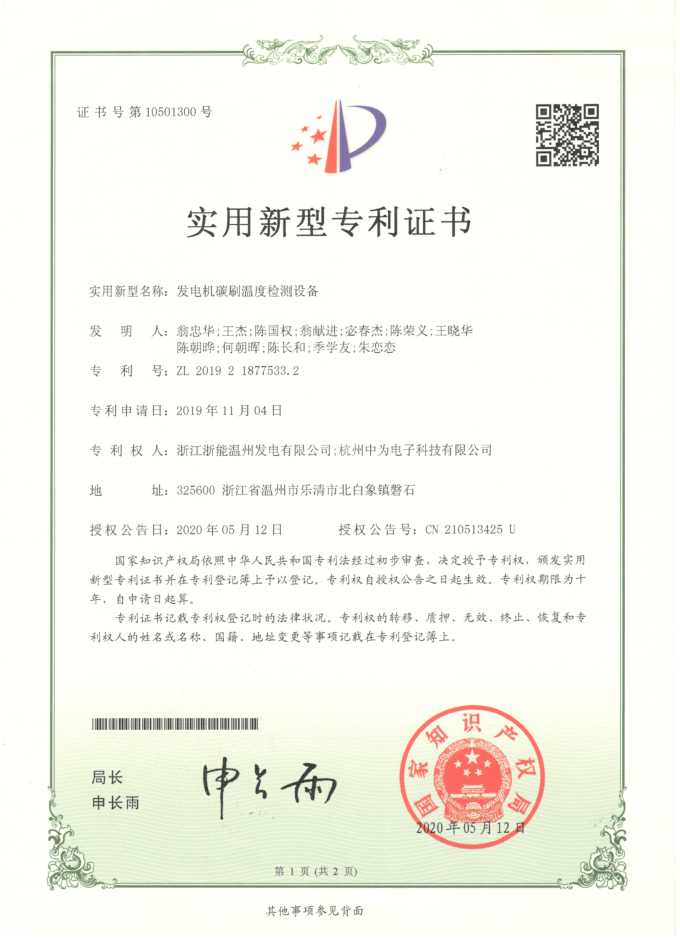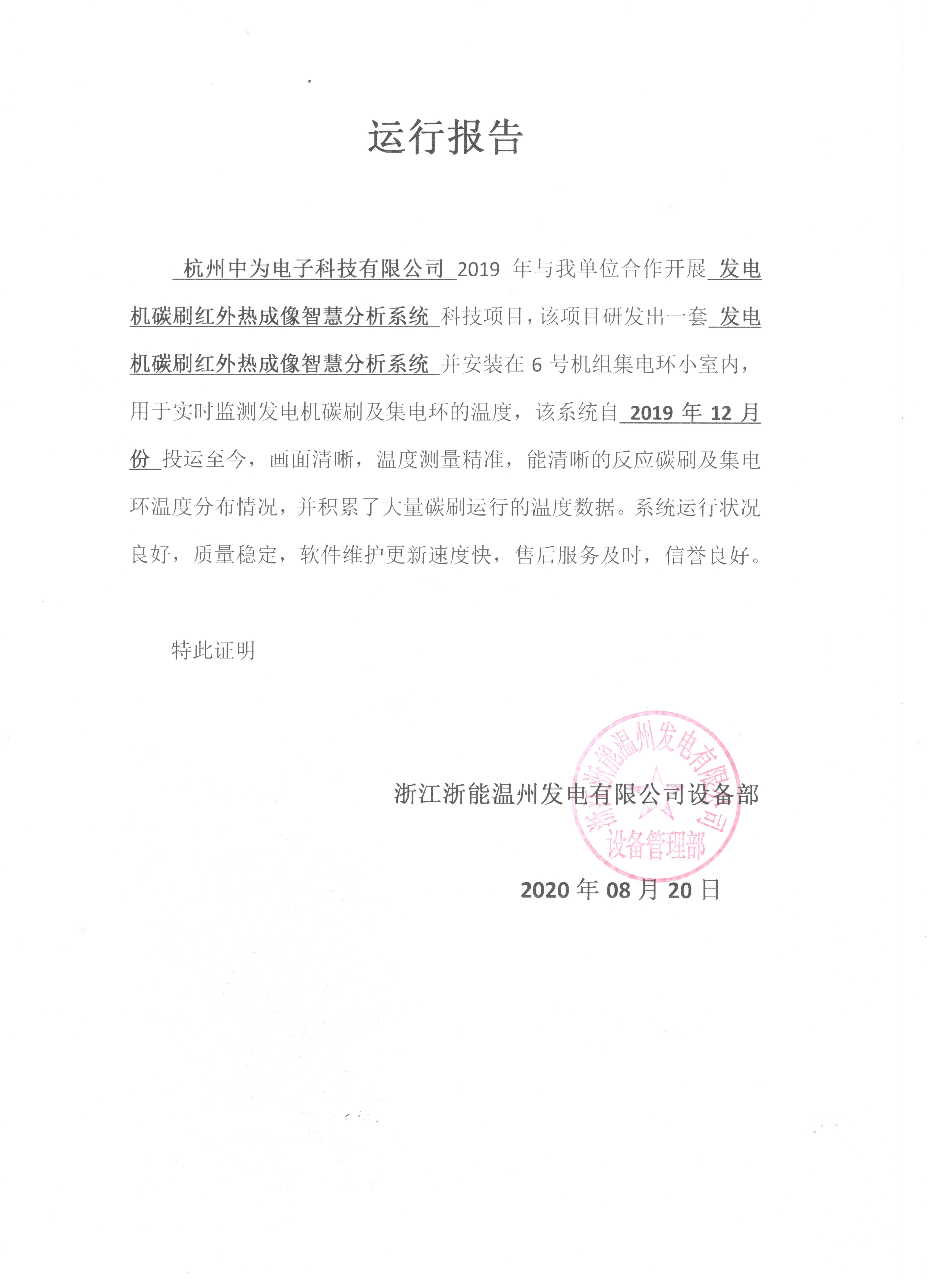 發(fā)電機碳刷在線監(jiān)測系統(tǒng)研發(fā)項目2019年1月份由我公司與浙江浙能溫州發(fā)電有限公司聯(lián)合開展科技項目立項申請,并由浙能集團公司審批通過。項目在2019年9月份正式啟動研發(fā),10月底完成硬件部分的研發(fā)有生產,并于11月12日在溫州電廠6號機組集電環(huán)小室內完成安裝。11月底軟件部分的也基本完成,12月5日完成軟硬件的對接工作,12月13日由溫州電廠內部組織項目驗收。2020年1月9日在溫州召開了專家驗收會議,參加會議的技術專家有陳彪(浙江浙能技術研究院,高級工程師)、彭福仁(浙江溫州特魯萊發(fā)電有限責任公司,高級工程師)、楊幫敏(浙江浙能樂清發(fā)電有限責任公司,高級工程師)、李時欣(浙江浙能紹興濱海熱電有限公司,注冊消防工程師)、瞿瀟(浙江浙能長興發(fā)電有限公司,高級工程師)。