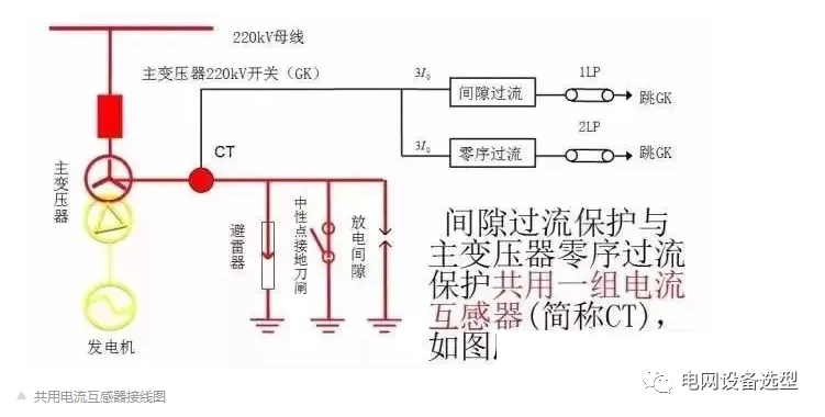通常情況下,當一臺變壓器生產完畢且在出廠前都會裝設有中性點CT,那么我們?yōu)榱诉_到降低錢財消耗的目的,零序過流就采用的是這個自帶的中性點CT,而間隙過流則采用的是單獨CT的綜合接線。