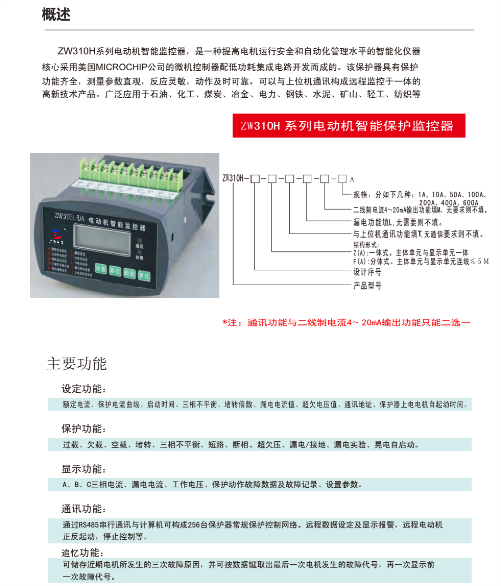 ZW310H 電動(dòng)機(jī)監(jiān)控器
